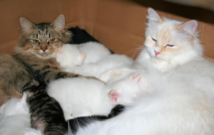 Upsala unterstützt ihre Freundin Mojito, die auch gerade Kitten hat |