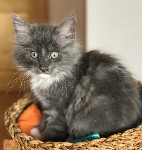 | Maine Coon Sun-Wurf geb. 23. Juli 2017 Vater: Belfion vom Sternenschweif creme-tabby-cl./white Mutter: Calico Charissia vom Sternenschweif black-tortie-smoke/white |