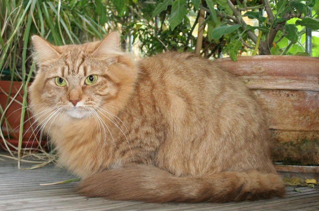 Wir haben seit Mitte 2003 Sibirische Katzen/Neva Masquarade in der neuen Farbe cinnamon und fawn (vorläufig als "andere Halblanghaar" im Zuchtbuch eingetragen). Im Januar 2006 wurde der erste Cinnamon-Träger, Gorbi the Fabulous, auf einer Ausstellung als sibirischer Kater anerkannt, durch die Richterinnen Frau Gremmel und Frau Keilich. Im Juni 2006 folgten die Katzen Boreijka of Ramsescats und Benisha of Ramsescats durch die Richterinnen Frau Gremmel und Frau Krediet. Inzwischen haben alle unsere Zuchtkatzen die